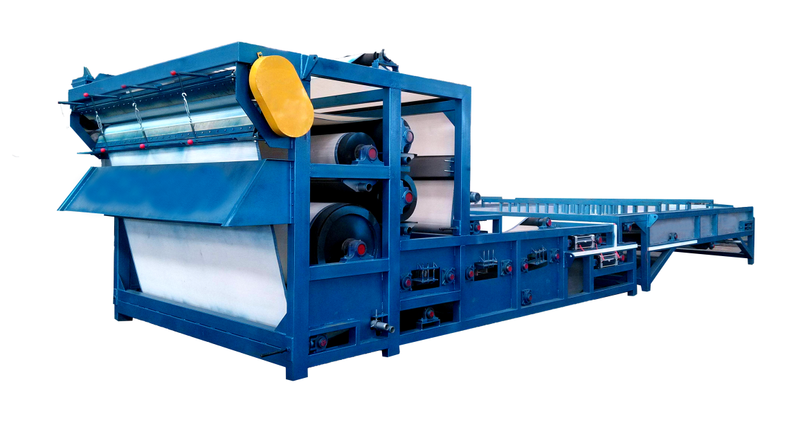 壓濾機是洛陽隆中重工在引進壓濾技術基礎上研制成功的新機型, 該設備是通過兩條濾帶纏繞在系列順序排列、大小不等的輥輪上,利用濾帶間的擠壓和剪切作用,來脫除料漿中水分的種壓濾設備,具有著能連續作業、自動化程度高、節能、使用維護方便等優點,是種進行污泥脫水減量化處理的好設備。